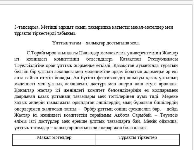 Тұрақты тіркестер: Мың бұралған бишілер, ұлттық тағамдар - халықтар достығына апарар жол.