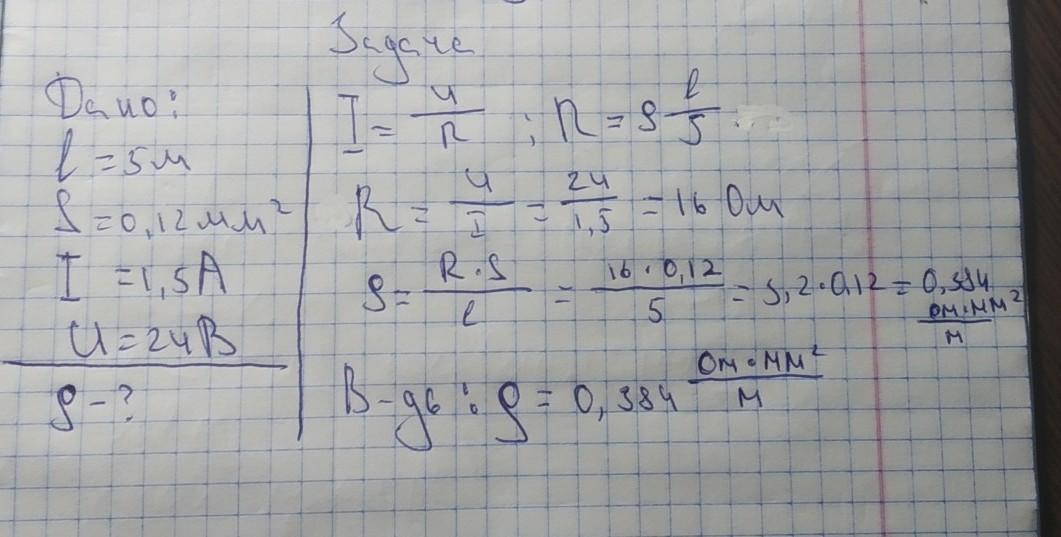 О, 12 мм? протікає струм силою 1,5А за напруги 24 В. Визначте питомий
