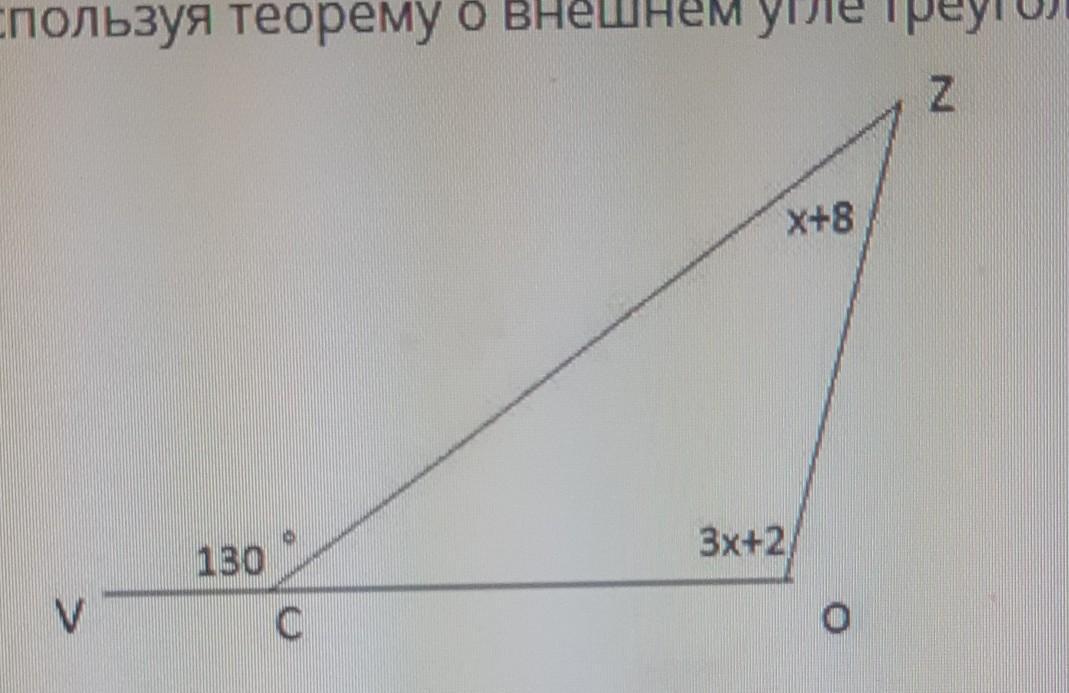 сумма углов в треугольнике 180=50+(х+8)+(3х+2), откуда следует что х=30, то есть внутренний угол при вершине О равен 3*30+2=92 градуса, а наружный 180-92=88 градусов.