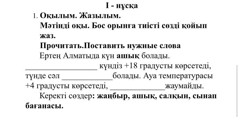 Мәтінді оқы. Бос орынға тиісті сөзді қойып жаз.