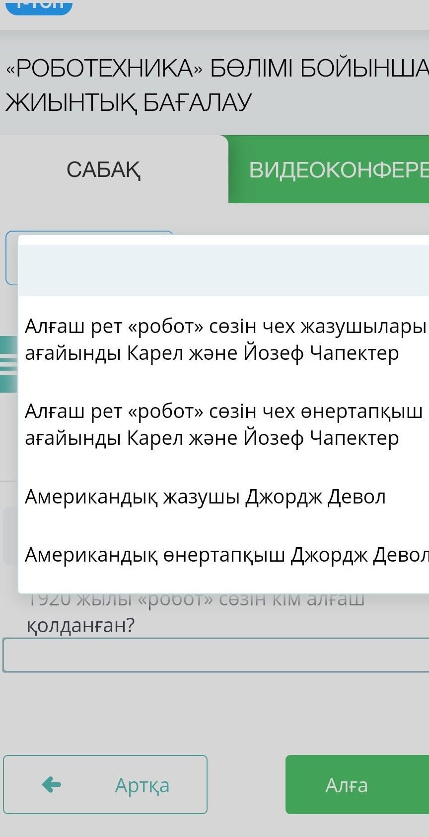 ООООО У МЕНЯ ТОЖЕ ЭТО БЫЛО СЕГОДНЯ В 12:00 ответ: Алғаш рет “робот” сөзін чех жазушылары ағайынды Карел және Йозеф Чапектер