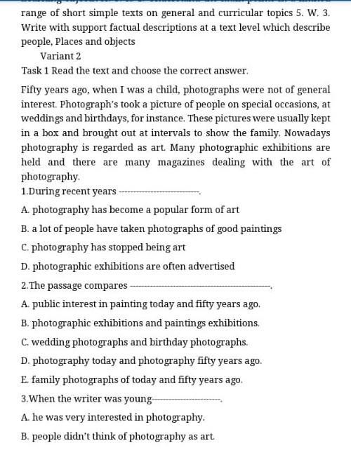 Пятьдесят лет назад, когда я был ребенком, фотографии не представляли общего интереса. Фотографы фотографировали людей по особым случаям, например, на свадьбах и дня рождениях. Эти фотографии обычно хранились в коробке и время от времени выносились, чтобы показать семье. В наши дни фотографирование считается искусством. Проводится множество фотовыставок, издается множество журналов, посвященных искусству фотографирования.