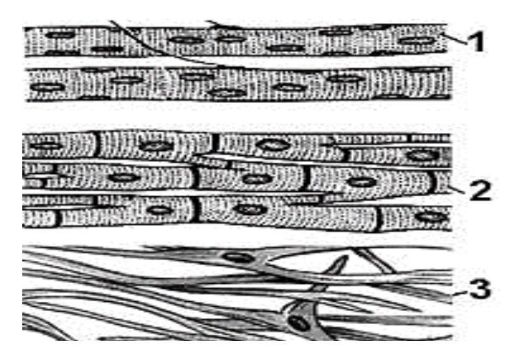 а) Определите виды мышечной ткани, изображенные на рисунке цифрами 1,2,3
