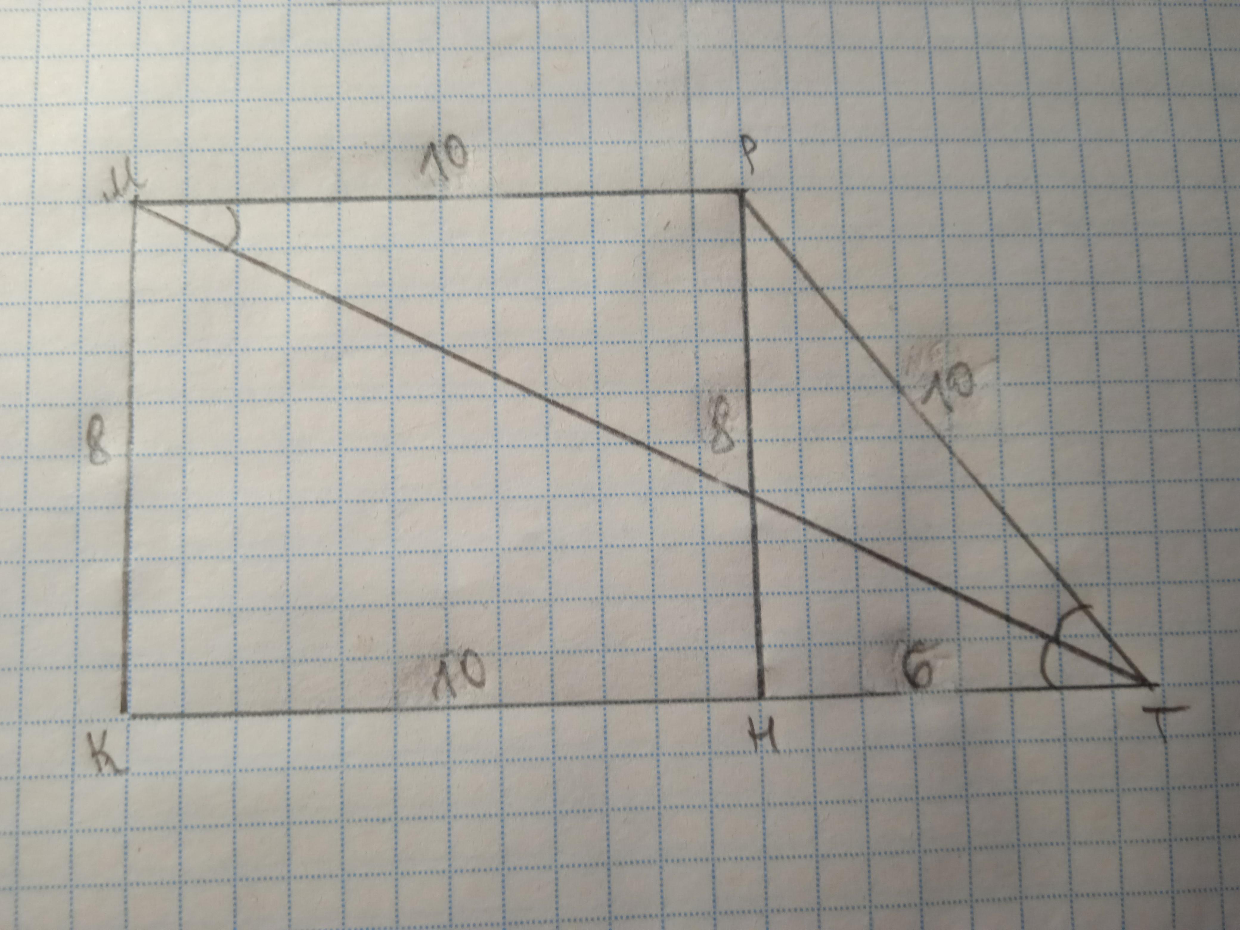Дано: КМРТ - трапеция, МК⊥КТ, МК=8 см, РТ=10 см. МТ - биссектриса. Найти S(КМРТ).