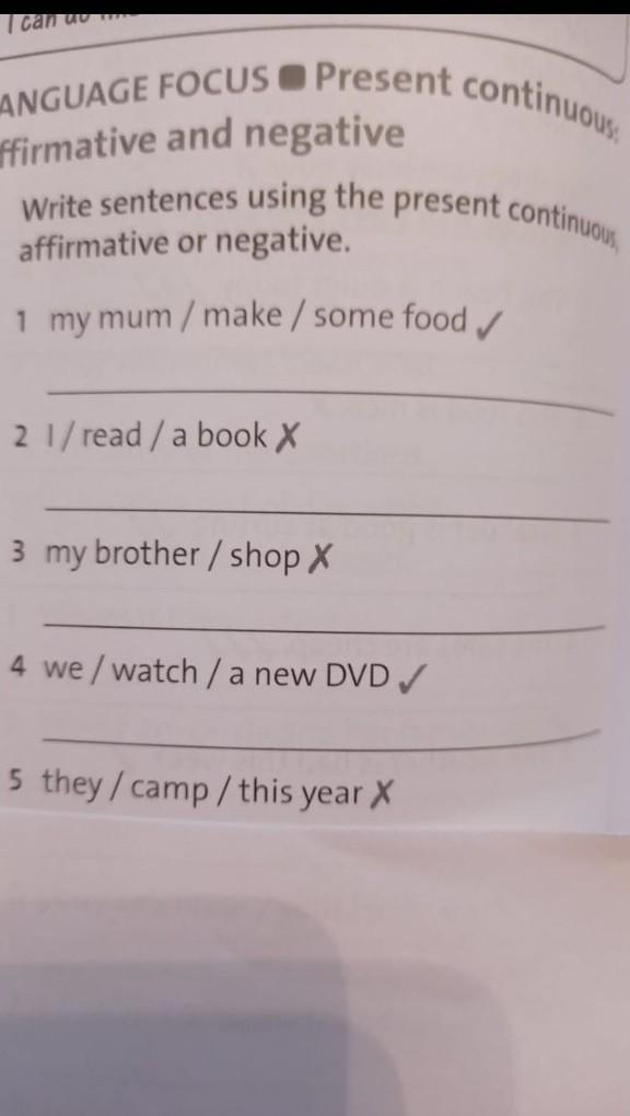 английский пж ответ срочно надо в present continuous там где крестик отрицательное а где галочка это положительноейй