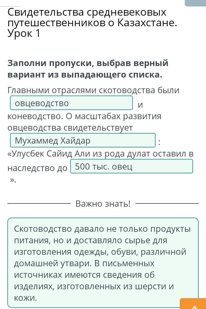 Заполни пропуски, выбрав верный вариант из выпадающего списка.