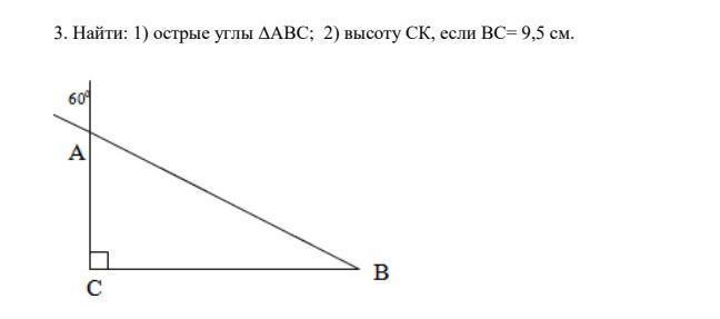 Так как СК — высота, то CK ⊥ AB и ΔBKC является прямоугольным треугольником (∠К = 90°).