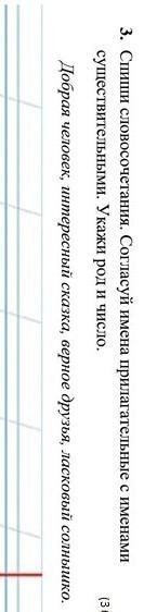 спиши словосочетания. согласуй имена прилагательные с именами существительными. Укажи род и число