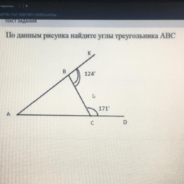 я не тот ответ скинула точнее не тому , 180 -124 и получишь один угол потом 180 - 171 получи ответ а потом то что вышло сложи и отними 180 и получишь все три угла
