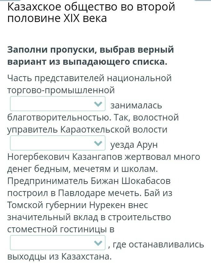 Заполни пропуски, выбрав верный вариант из выпадающего списка.