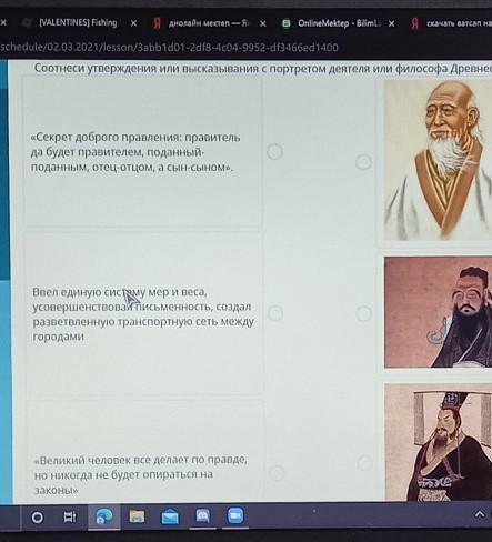 Соотнеси утверждения или высказывания с портретом деятеля или философа Древнего Китая