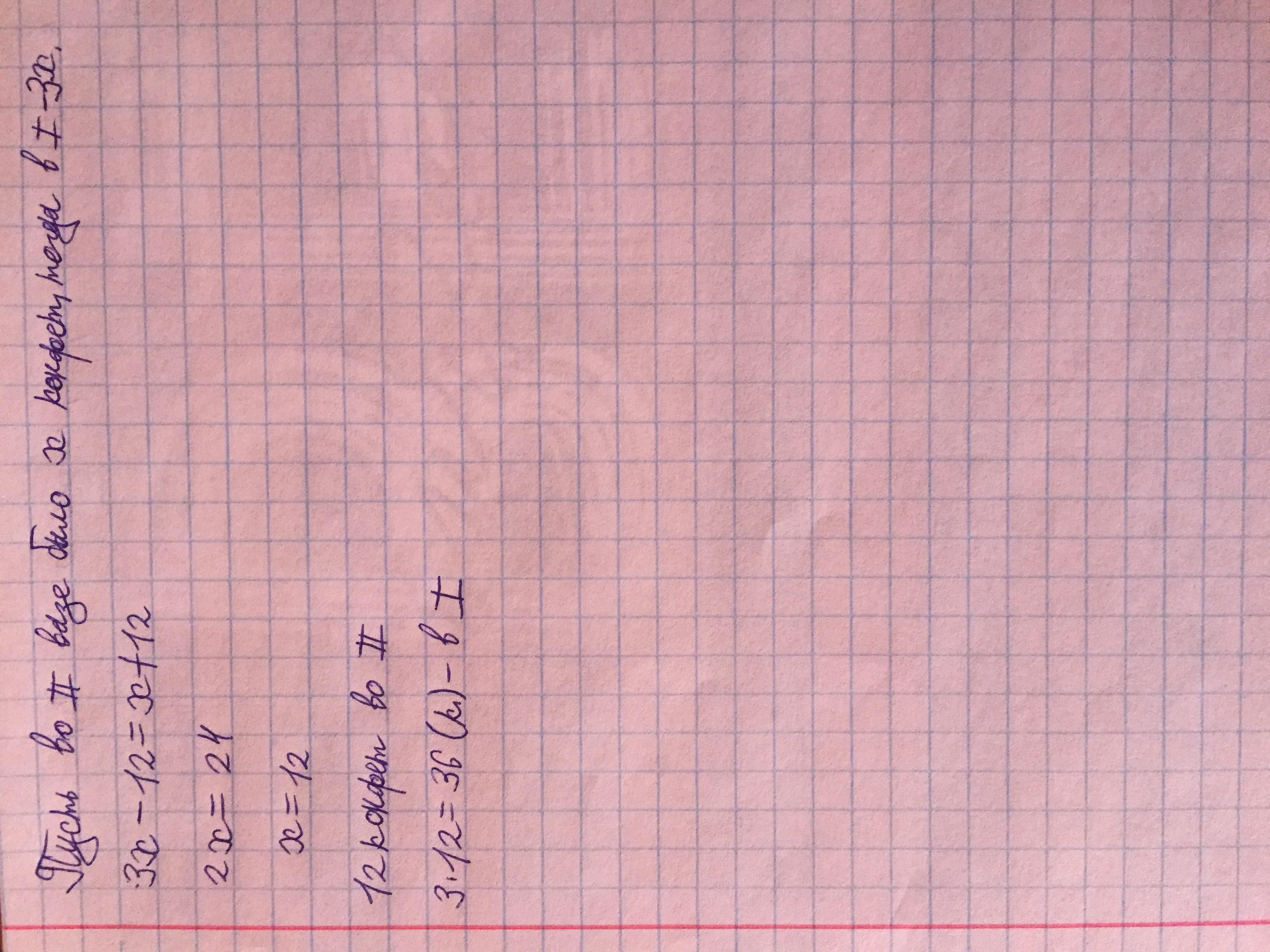 Пусть во 2 вазе было x конфет,тогда в 1 было (3x) конфет.