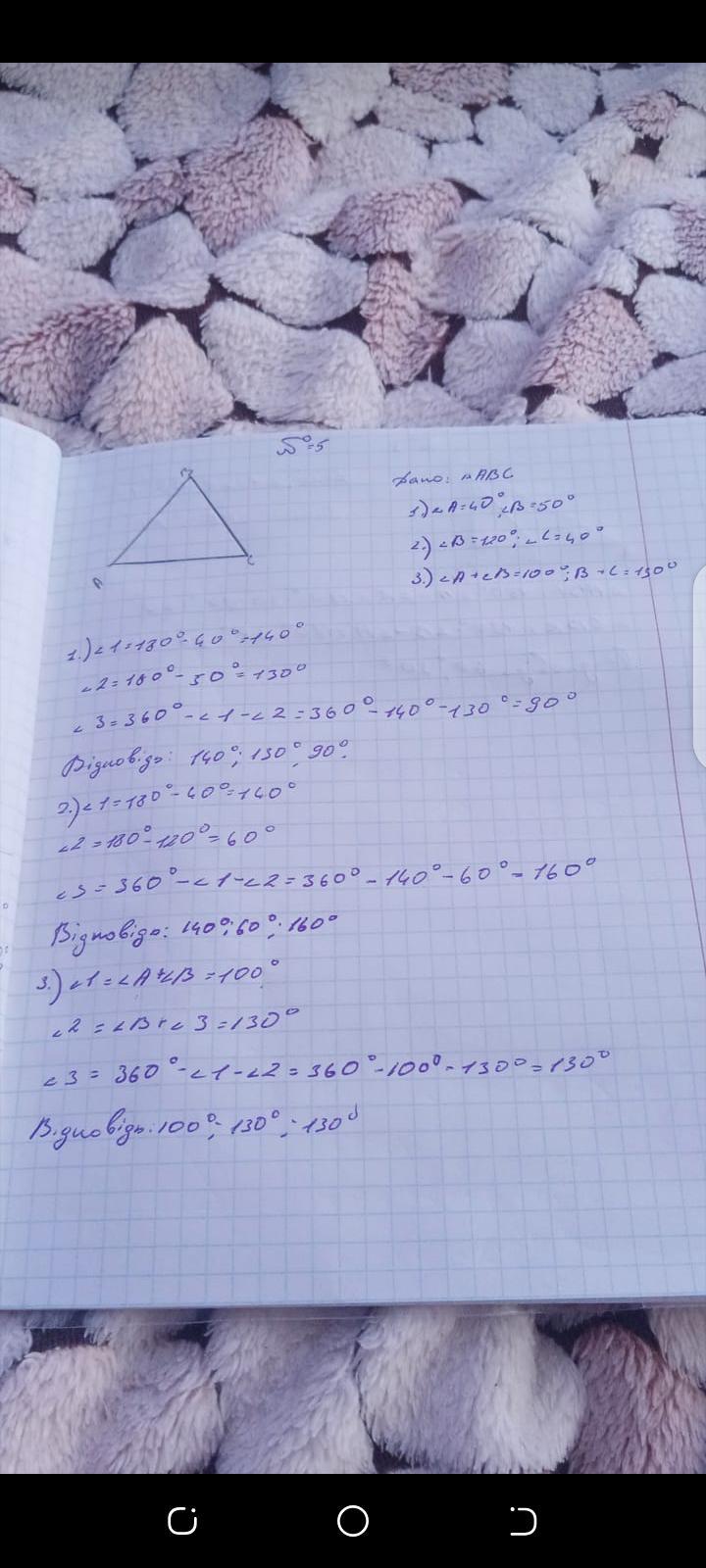 Знайдіть міри зовнішніх кутів трикутника АВС ,якщо: