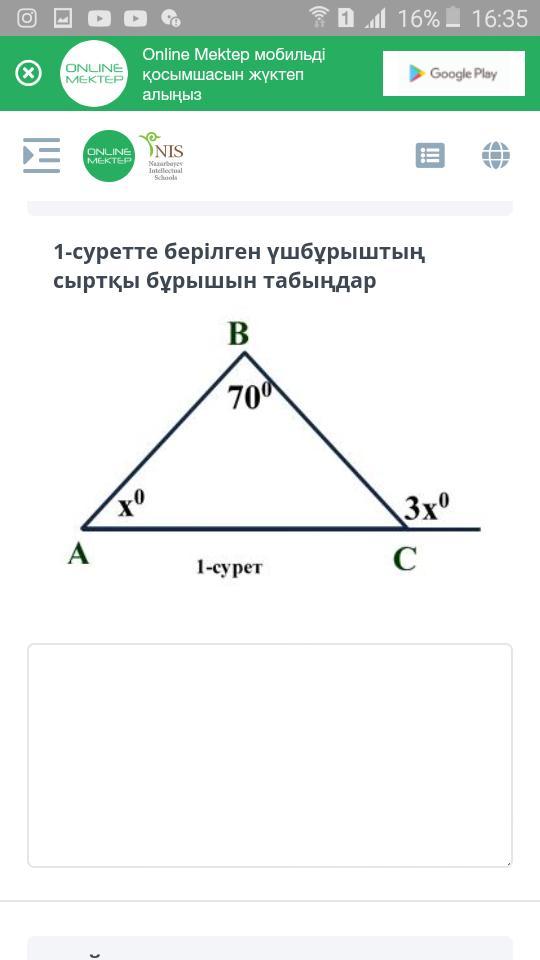 Два внутренних угла не смежных с внешним равны в сумме градусной мере внешнего угла