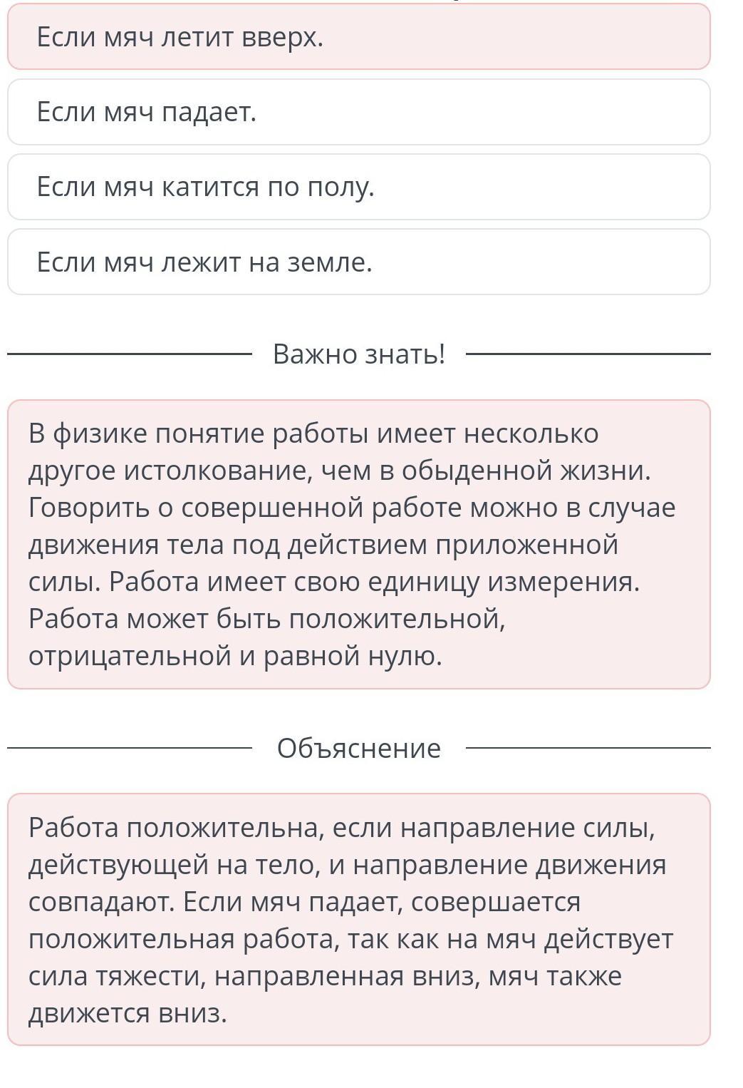 Определи, в каком случае совершается положительная механическая работа.
