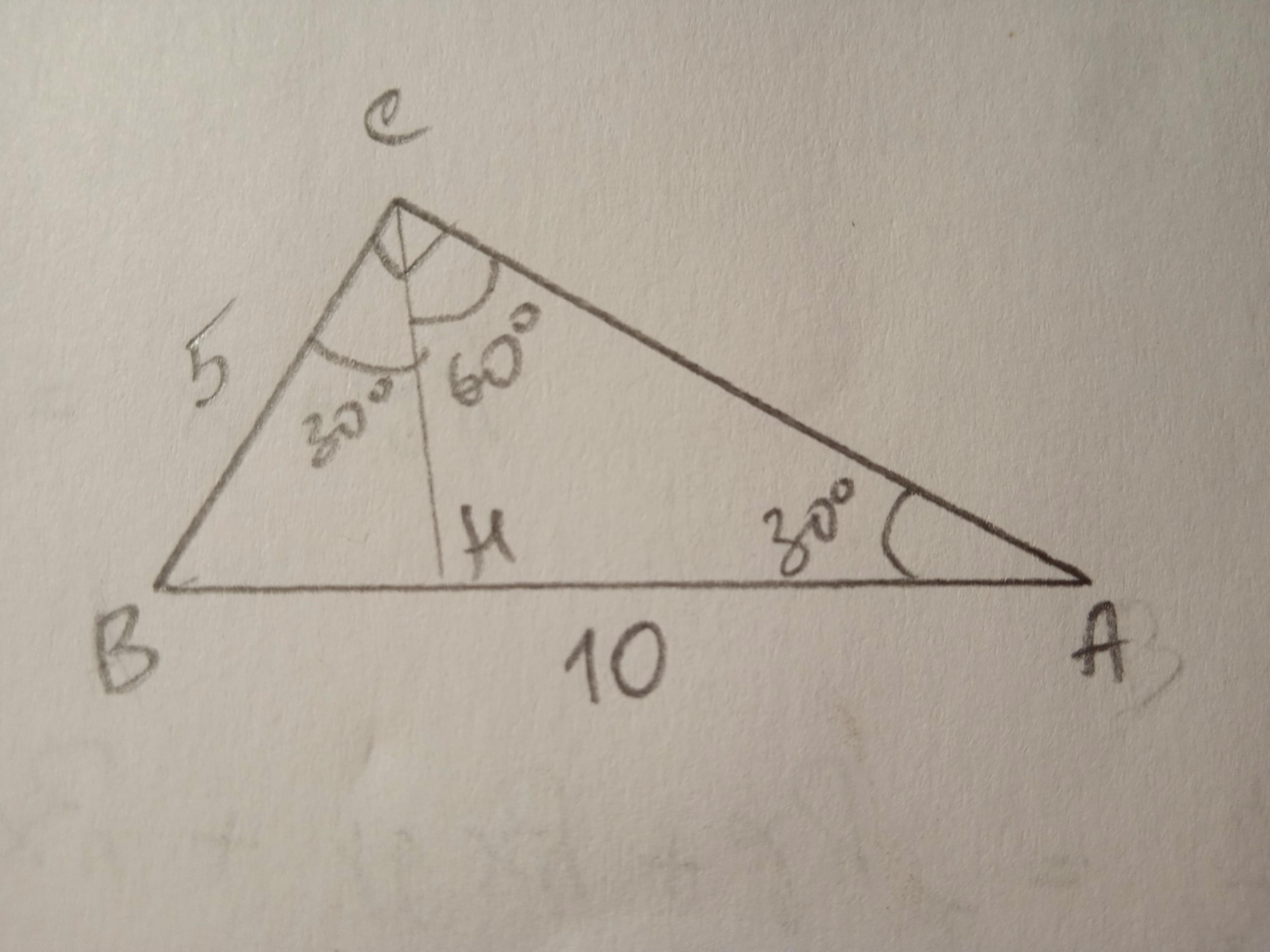 Дано: ΔАВС , ∠С=90°, АВ=10 см, СВ=5 см. Найти ∠АСН и ∠ВСН.
