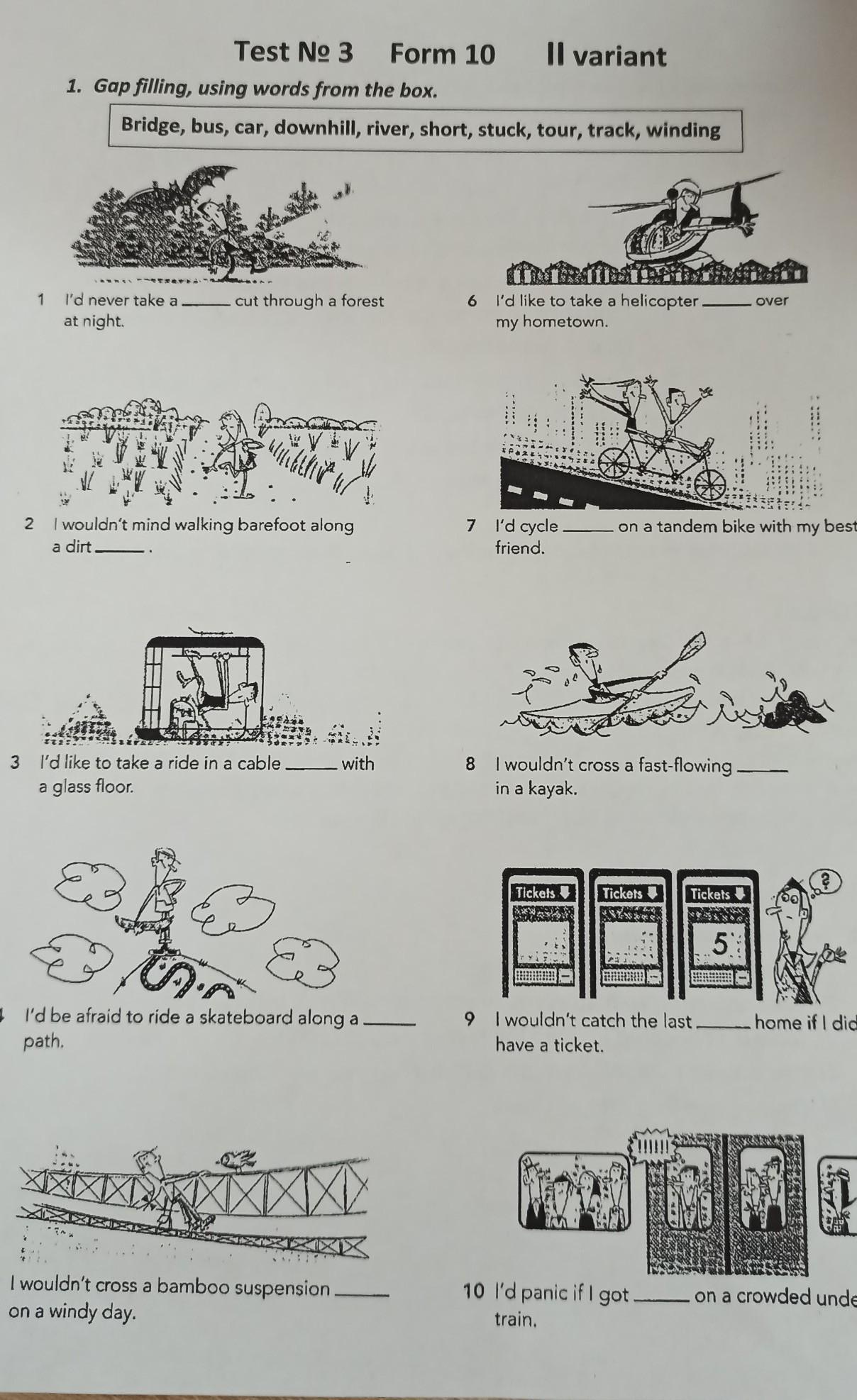 1) Cut 2)Downhill 3)Tour 4)Winding 5)Bridge 6)Track 7)Car 8)River 9)Bus 10)Stuck