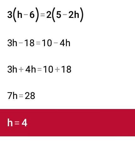 3(h-6)=2(5-2h)