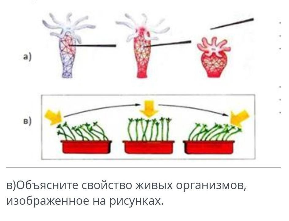 Объясните свойства живых организмов изображенное на рисунках