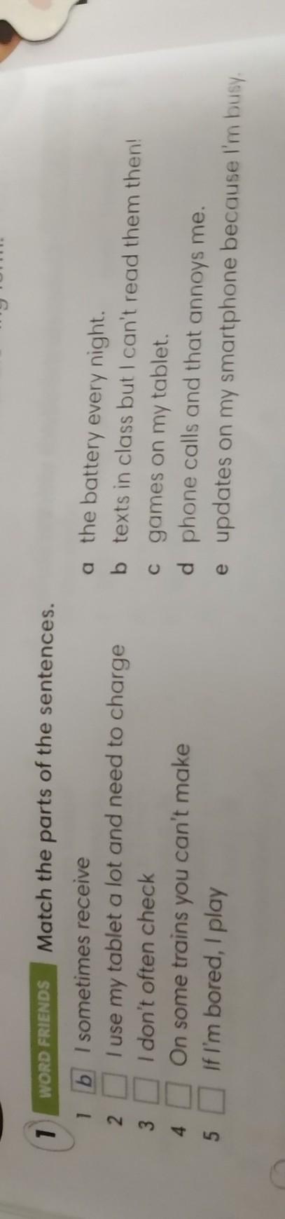 1. I sometimes receive texts in class but I can't read them then! (b)