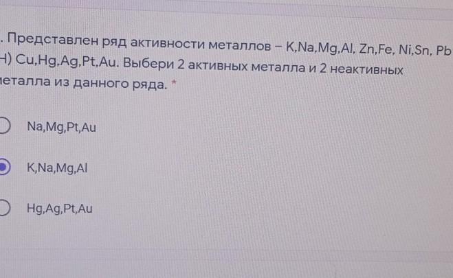 (H) Cu,Hg.Ag.Pt,Au. Выбери 2 активных металла и 2 неактивных