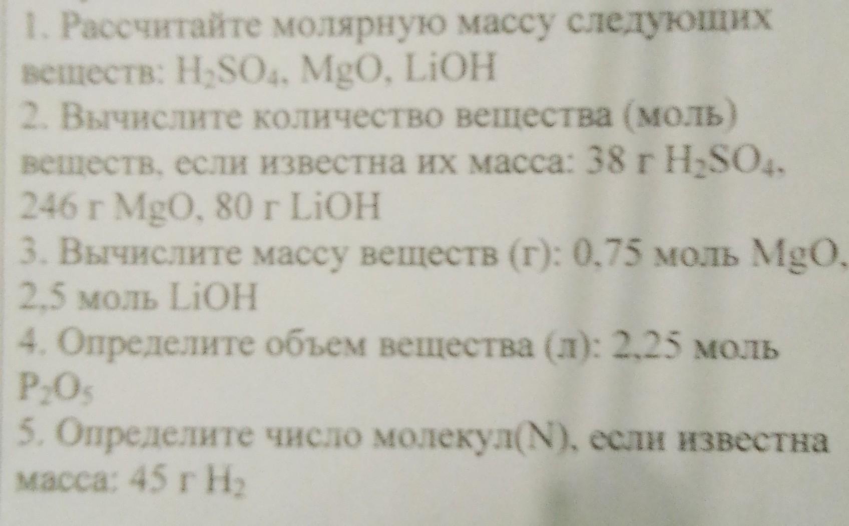 1) M(H2SO4) = 2*M(H) + M(S) + 4*M(O) = 2*1 + 32 + 4*16= 98 (г/моль)