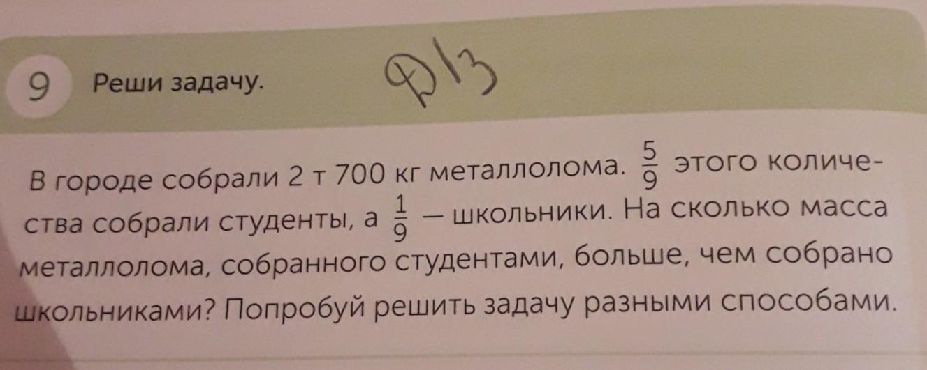 а в задачи сказано 1/9 собрали школьника а 5/9собрали студенты всё легко