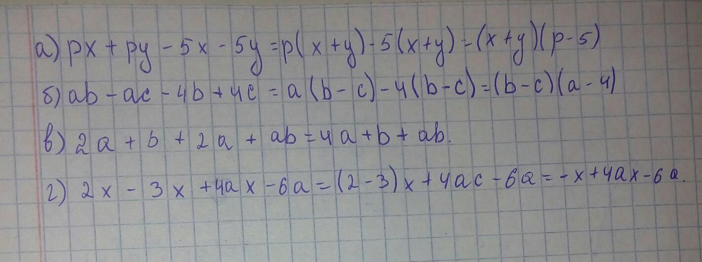 а) px + ру - 5x - 5у;
