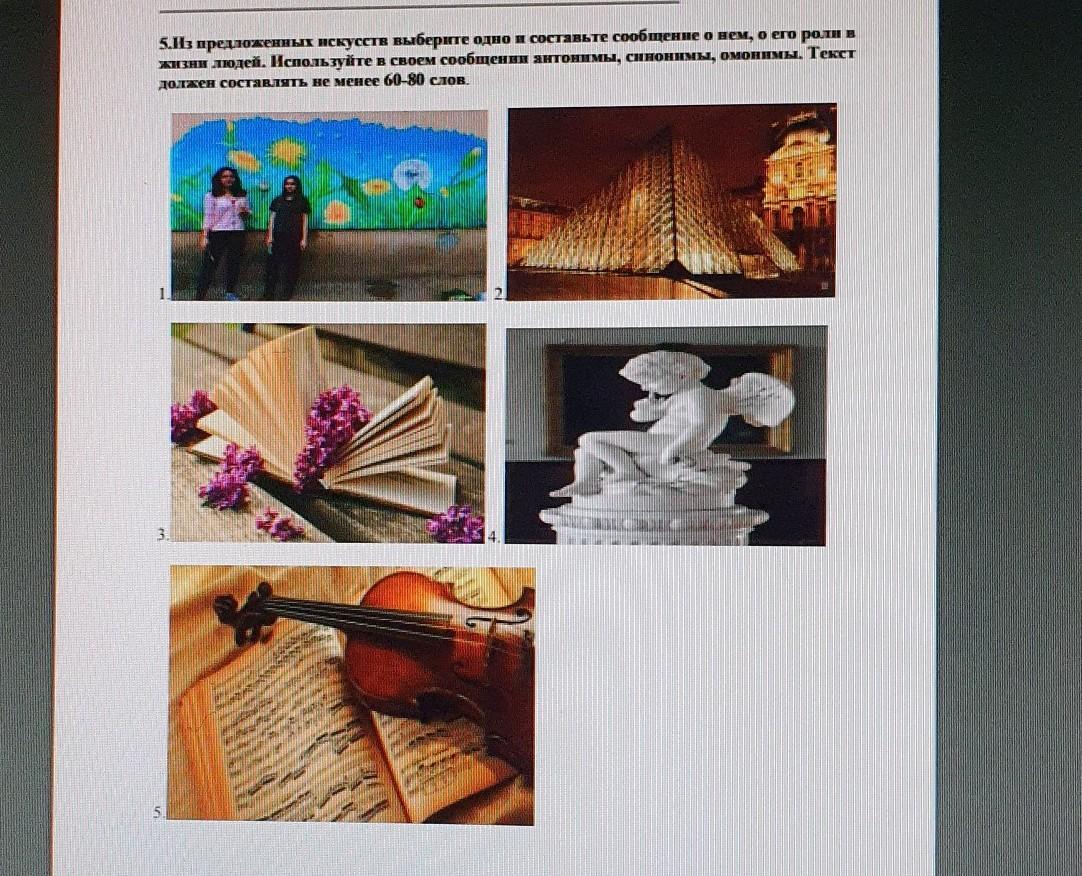 5.Из предложенных искусств выберите одно и составьте сообщение о нем, о его рали в