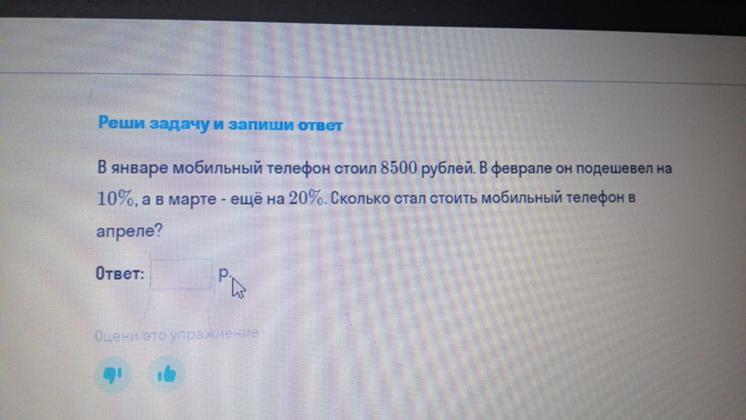 8500 - 850 = 7650 рублей стоил телефон в феврале