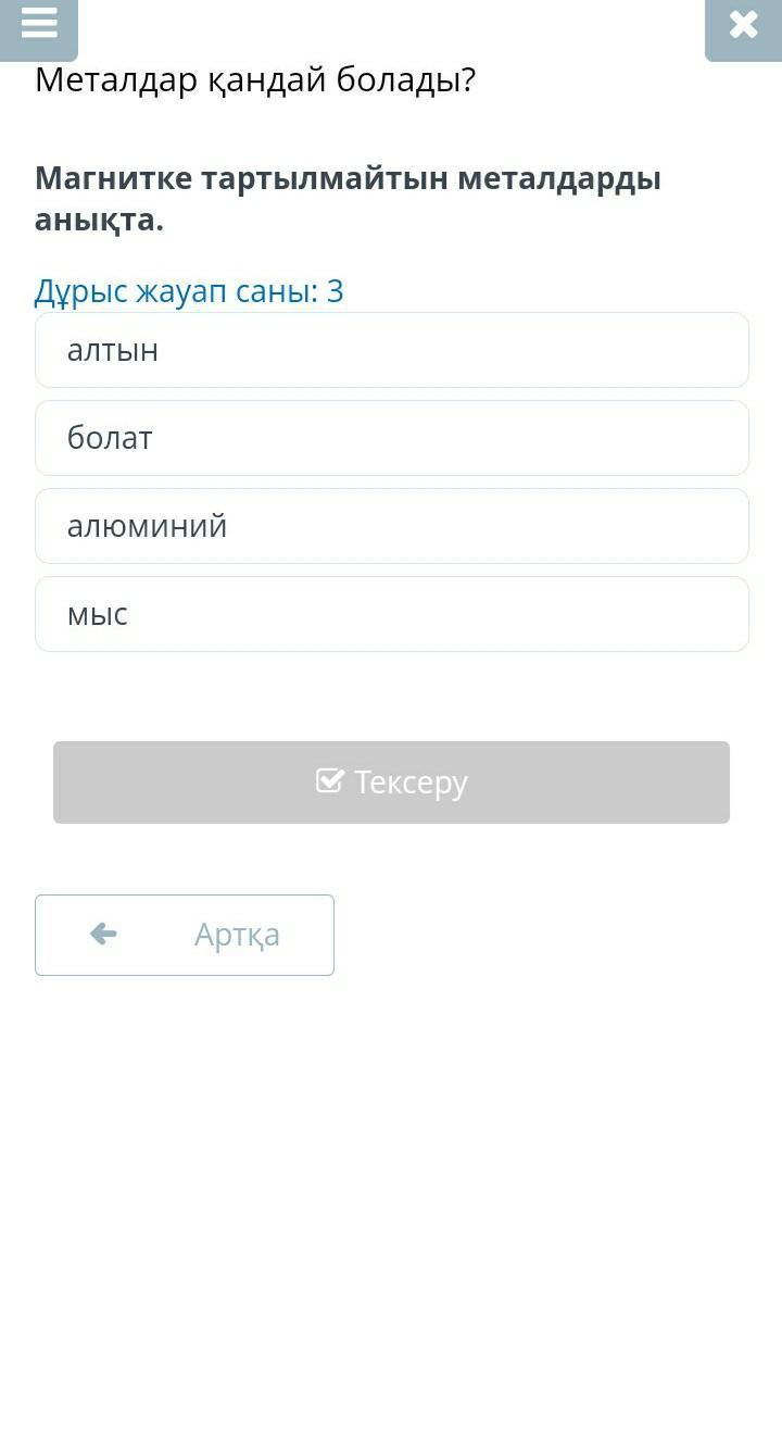 1) магнит , 2) алтын , 3) мым