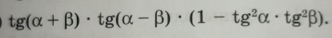 Можно попробовать умножить всё, что находится в скобках, на tg(a+B)*tg(a-B), при этом будет использован распределительный закон умножения, тогда получим следующее: