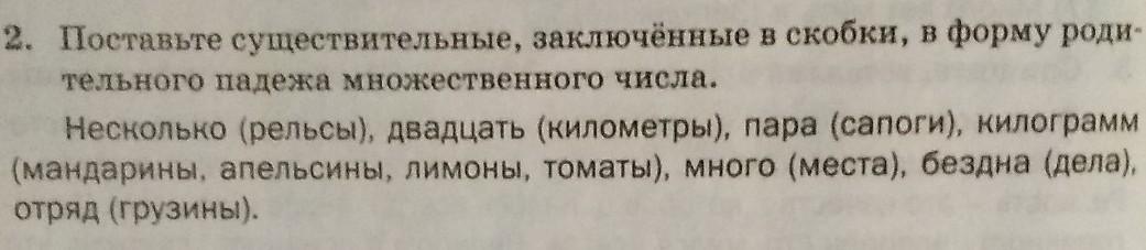 2. Поставте существительные, заключённые в скобки, в форму роди-