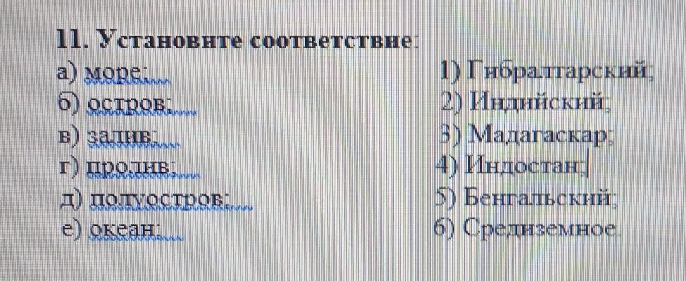 море Средиземное, остров Мадагаскар, пролив Гибралтарский, залив Бенгальский, океан Индийский, полуостров Индостан,