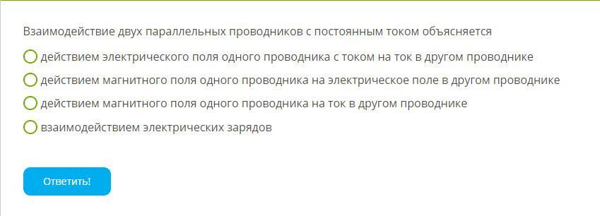 Ответ: в)Действием магнитного поляк одного проводника на ток в другом проводнике