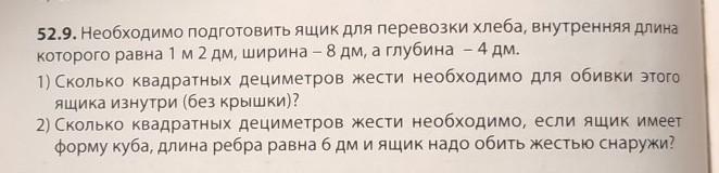 1.сколько квадратных дециметров жести необходимо для обивки ящика изнутри без крышки.