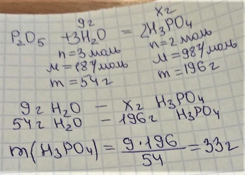 Решите задачу: Найдите массу фосфорной кислоты, полученной при взаимодействии 9 грамм воды с оксидом фосфора(V).