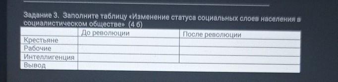 Задание 3. Заполните таблицу «Изменение статуса социальных слоев населения в