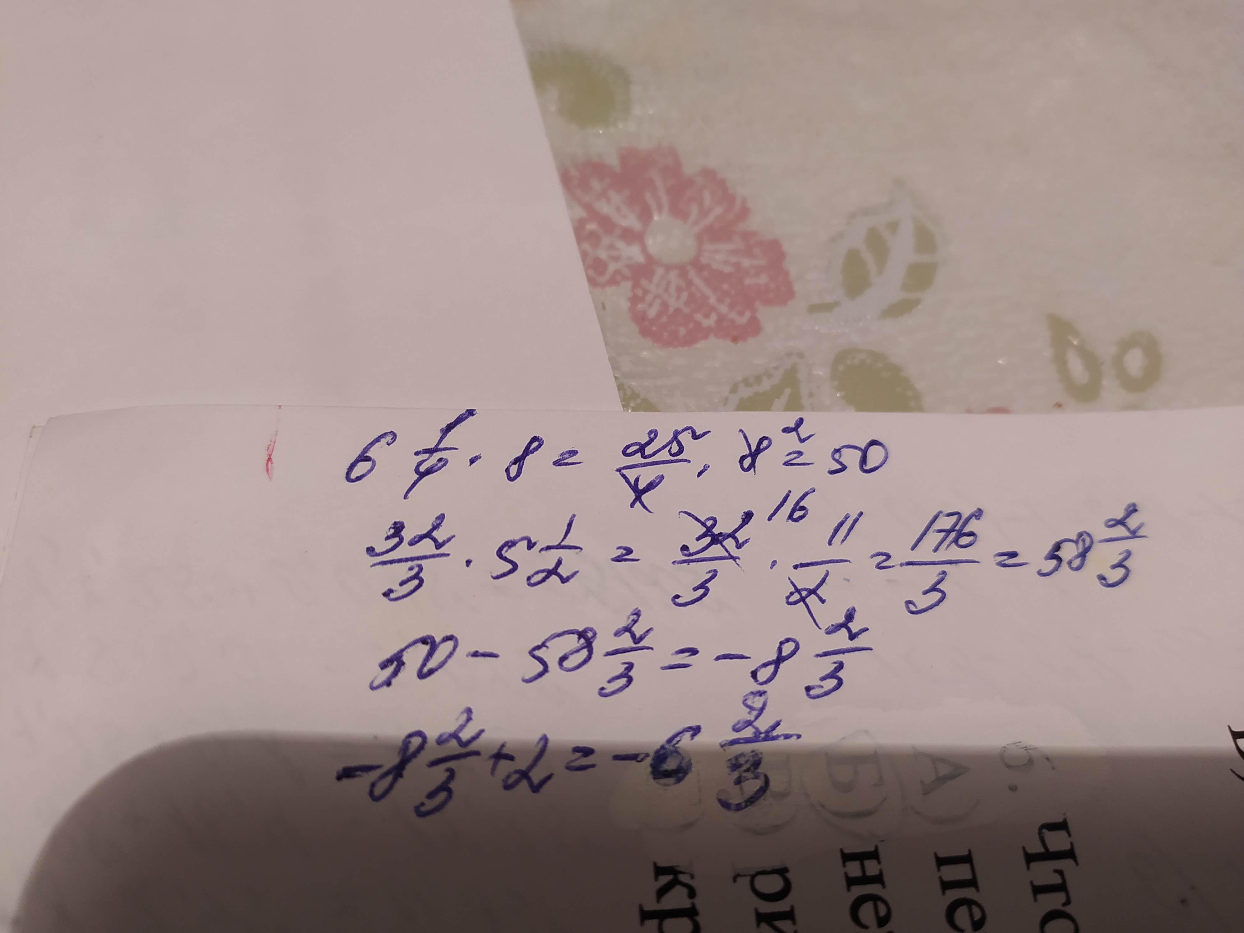 помогите решить дроби 6 целых 1/4×8-32/3×5целых 1/2 +2