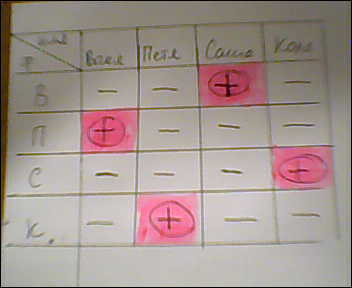 Продумайте структуру и создайте таблицу для решения следующей логической задачи.