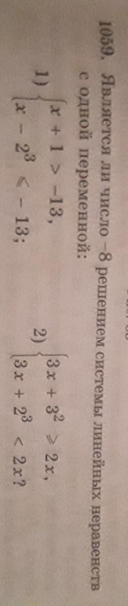 Является ли число-8 решением системы линейных неравенствс одной переменной: