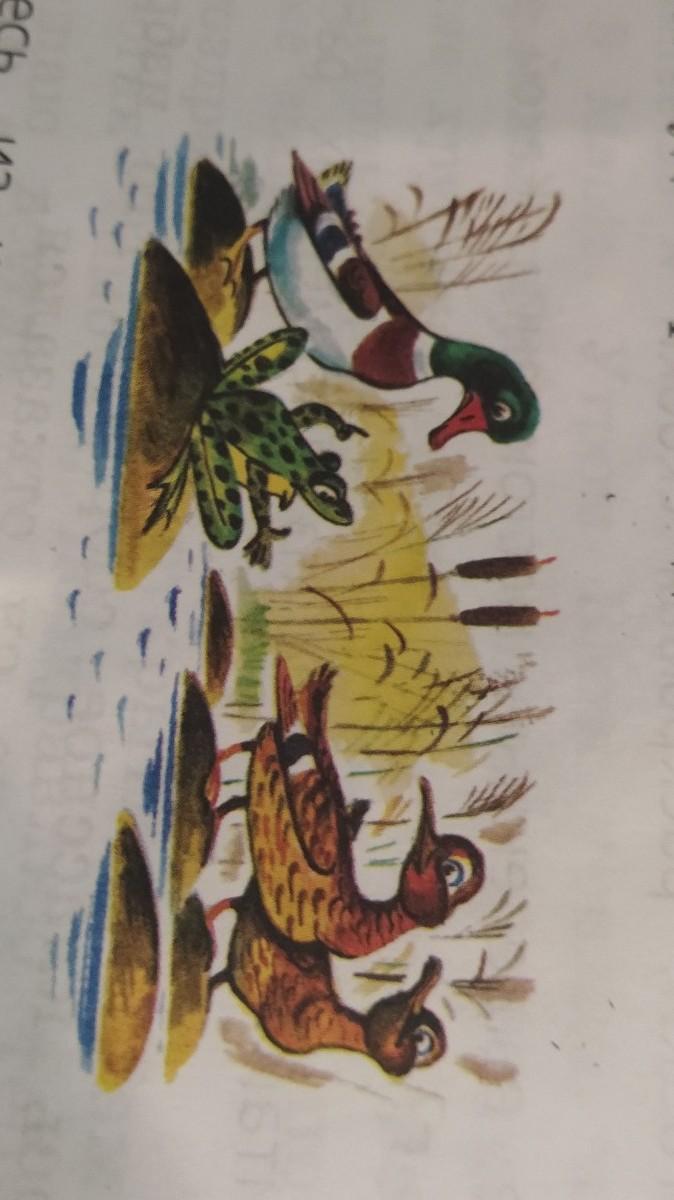 На озере было три утки и лягушка они наверное веселились и хорошо проводили время .