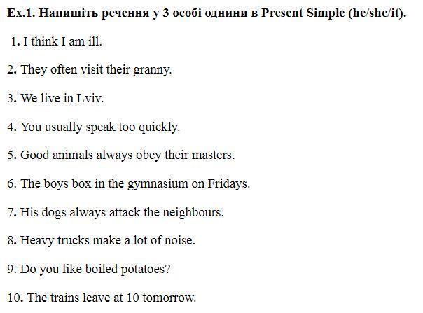 Помогите! Напишите предложения в 3 лице единственного числа в Present Simple (he/she/it).