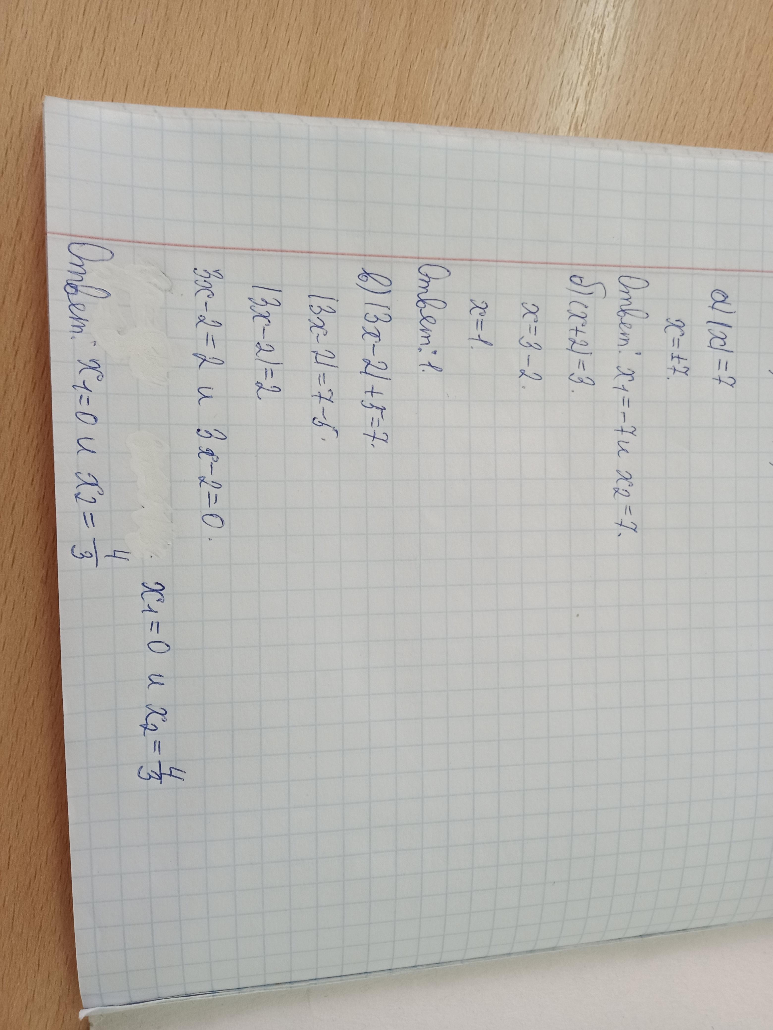 а) |x| =7 б)(х+2)=3 в) |3x-2| +5=7
