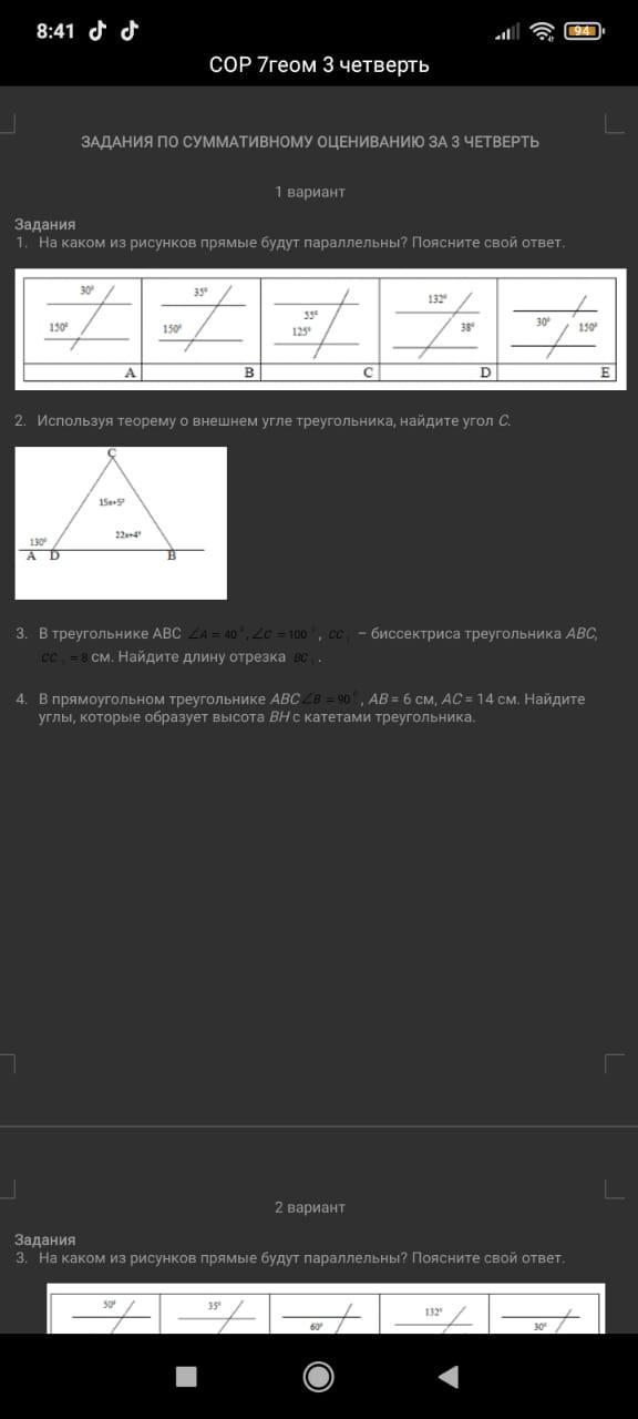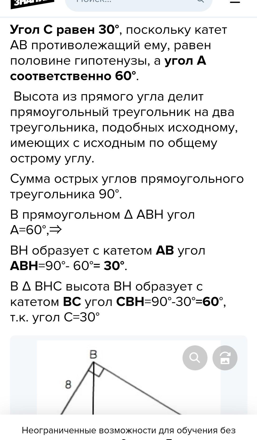 номер 3: BC 1 = 8 см; номер 4: CBH = 90 градусов минус 30 градусов = 60 градусов