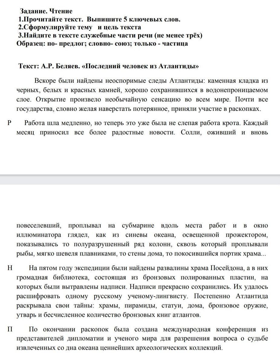 Прочитайте текст. Выпишите 5 ключевых слов. Сформулируйте тему и цель текста. Найдите в тексте служебные части речи (не менее трёх)