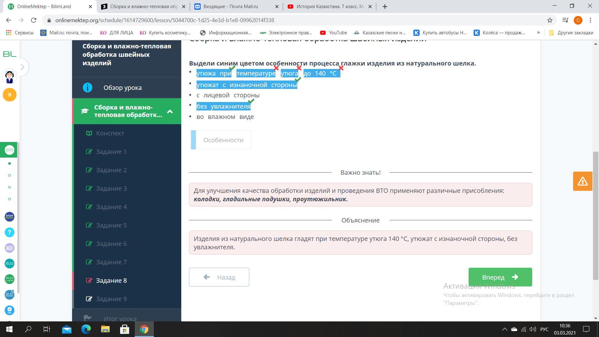 Выдели синим цветом особенности процесса глажки изделия из натурального шелка.