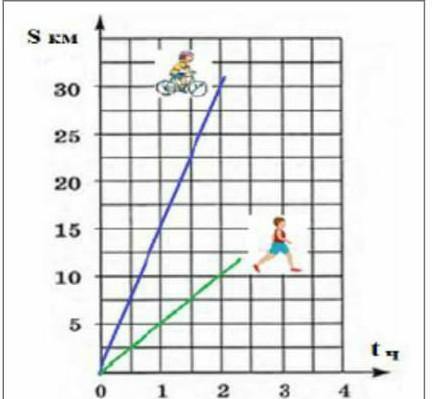 На рисунке изображен график движения пешехода и велосипедиста. Используя график, ответь на вопросы.