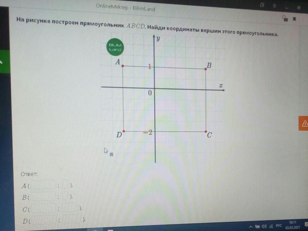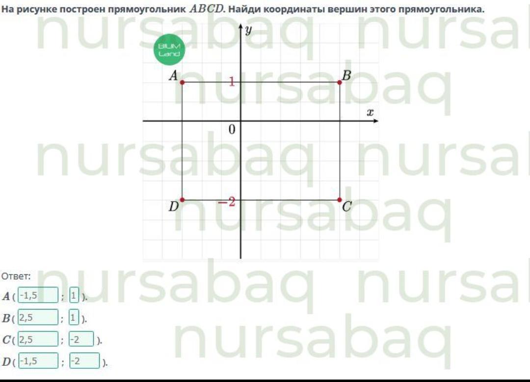 На рисунке построен прямоугольник ABCD. Найди координаты вершин этого прямоугольника.
