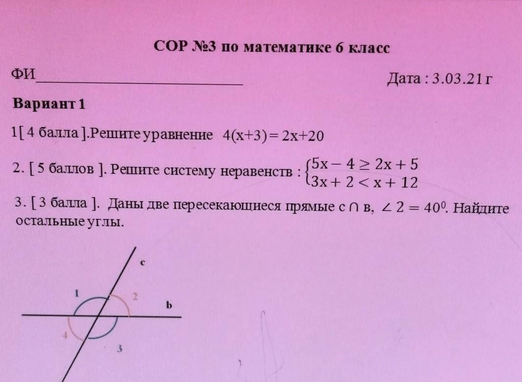 если угол2 равен 40° тогда смежный с ним угол 1 =180°-40°=140°